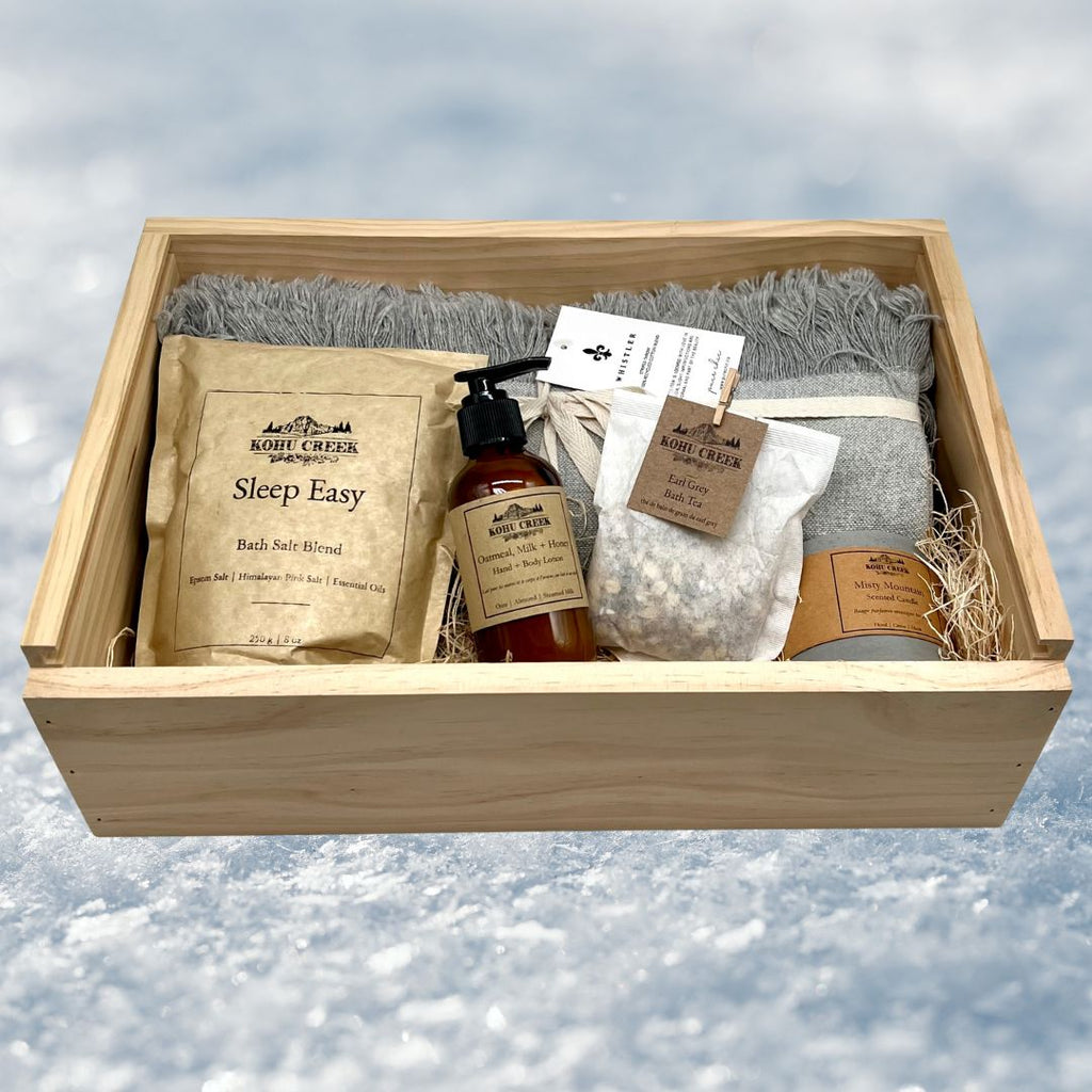 Sleep and relaxation when travelling can often be challenging.  The Sleep Easy Bath Salts added to a nightly bath creates the ultimate bath experience.    Kohu Creek / Whistler BC